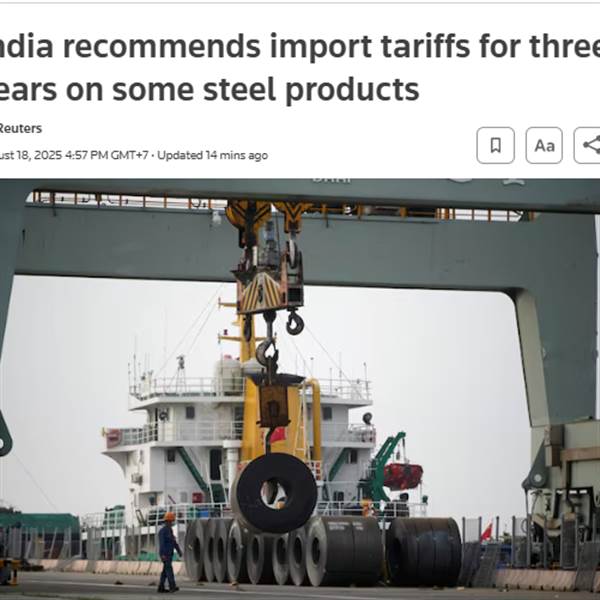 ẤN ĐỘ ĐỀ XUẤT ÁP THUẾ NHẬP KHẨU MỘT SỐ SẢN PHẨM THÉP TRONG 3 NĂM