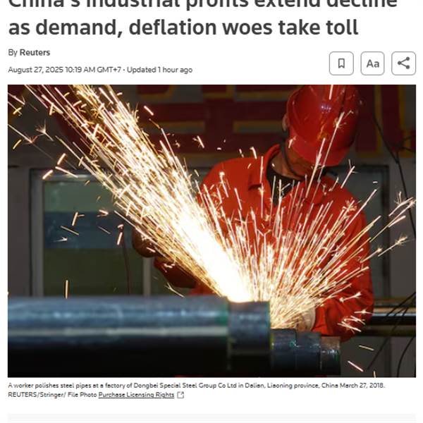 🔥 Lợi nhuận công nghiệp của Trung Quốc giảm trong tháng thứ ba liên tiếp do giảm phát và cạnh tranh gay gắt.