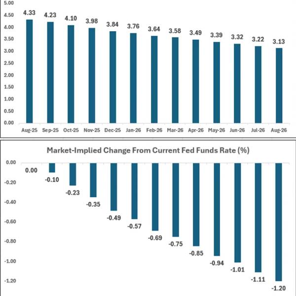 Thị trường trường đang định giá lãi suất Fed sẽ giảm từ mức hiện tại 4.33% xuống khoảng 3.13% vào tháng 8/2026, tức mức giảm khoảng -1.20% trong vòng 12 tháng tới. Điều này tương đương với 4–5 lần cắt...Thêm