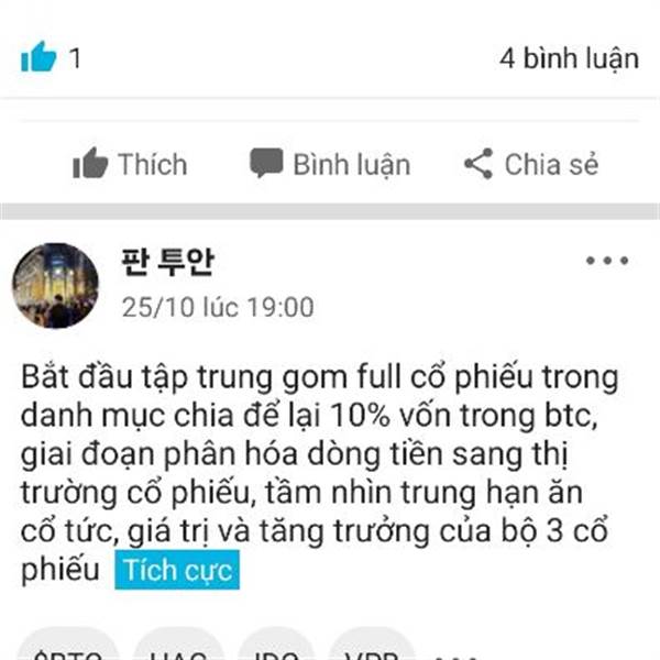 Bắt đầu tập trung gom full cổ phiếu trong danh mục chia để lại 10% vốn trong btc, giai đoạn phân hóa dòng tiền sang thị trường cổ phiếu, tầm nhìn trung hạn ăn cổ tức, giá trị và tăng trưởng của bộ 3 c...Thêm