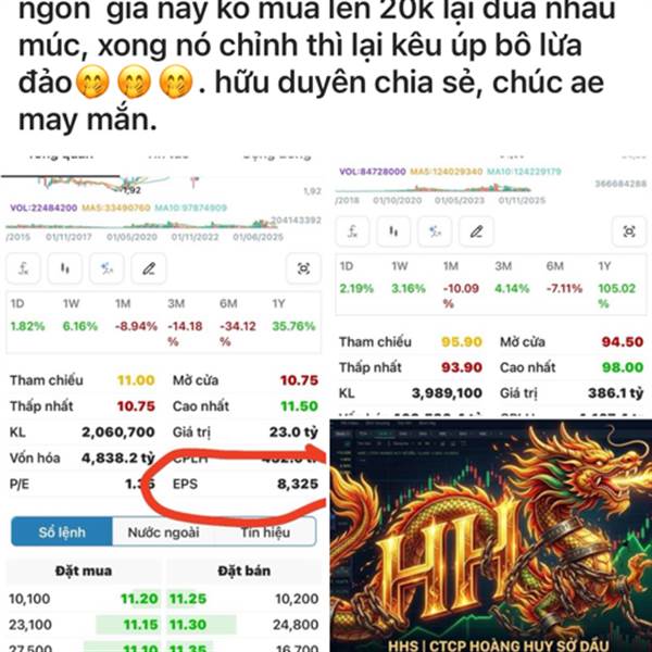 Ngày mai lại thấy báo đài ca ngợi HHS rồi. lúc rẻ thanh khoản èo uột chê ỏng chê eo. giờ muốn mua thì ko có ai bán🤭🤭🤭. Không thấy thằng trẻ con nhiều tuổi NGUYỄN HỒNG ANH vào khịa nhau nhể.