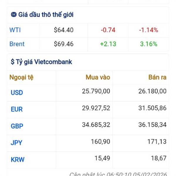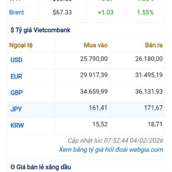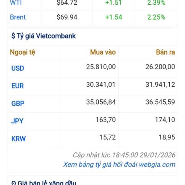 Phiên 29/1, giá dầu Brent vượt mốc 70 USD/thùng lần đầu tiên kể từ tháng 9/2025 sau khi Tổng thống Mỹ Donald Trump gia tăng sức ép địa chính trị bằng những lời đe dọa tấn công quân sự nhằm vào Iran.