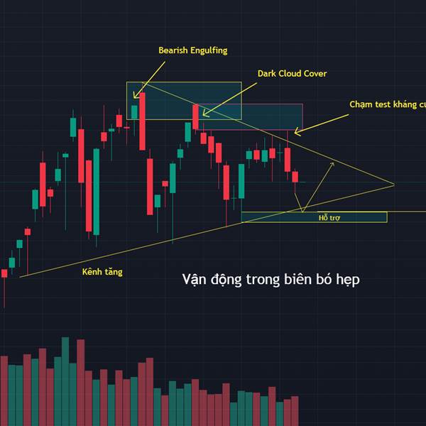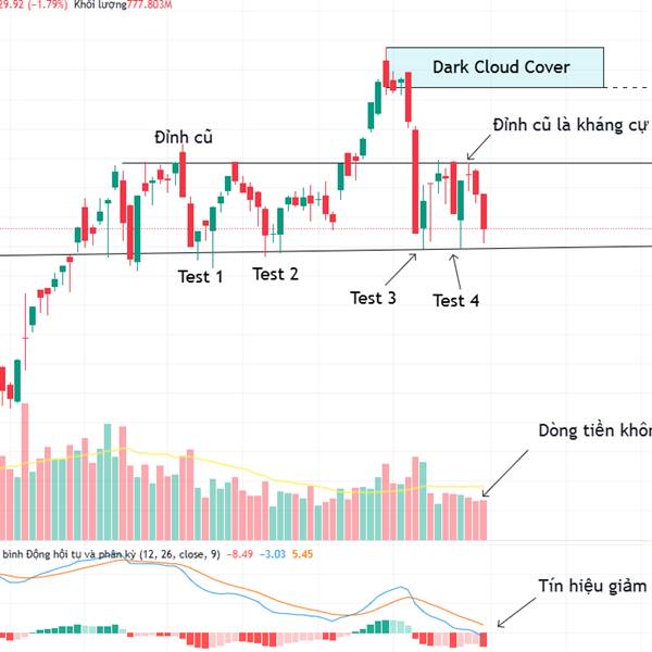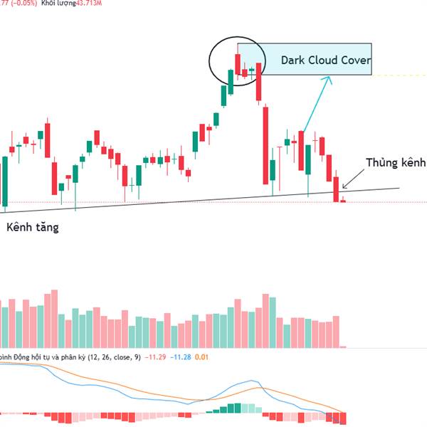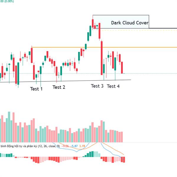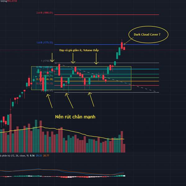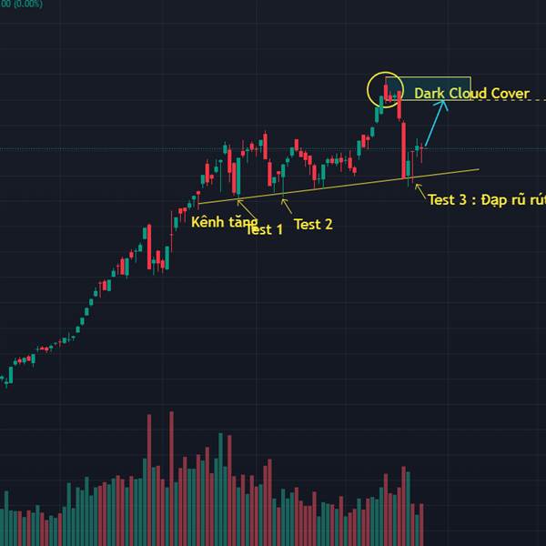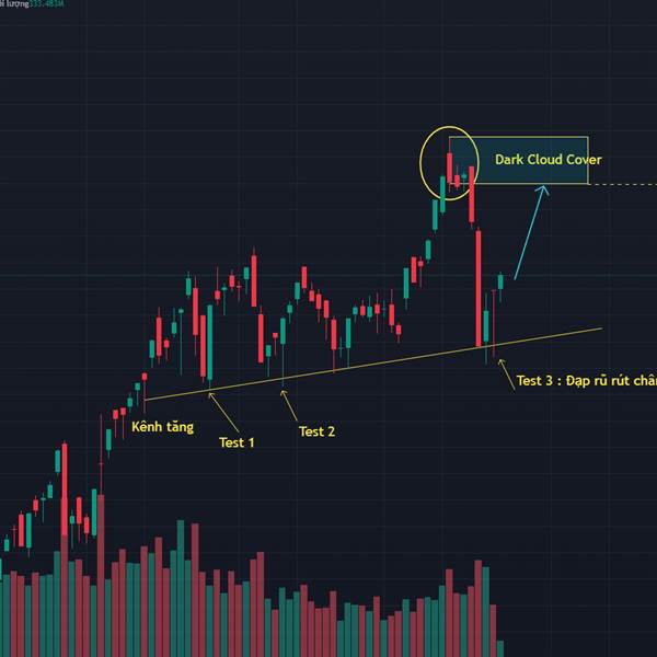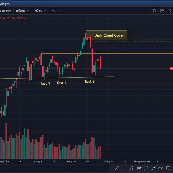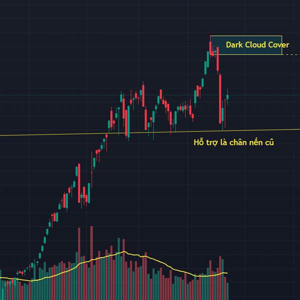 Ở đỉnh Vnindex tạo mẫu hình nến Dark Cloud Cover đảo chiều giá giảm sau đó co...Thêm