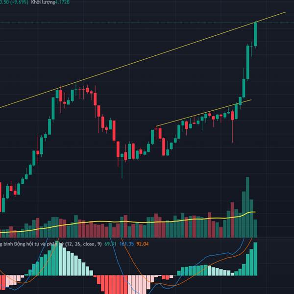 Quan sát biểu đồ cho chúng ta thấy sự vận động của giá đang đi trong mô hình cái nêm với biên độ bo...Thêm