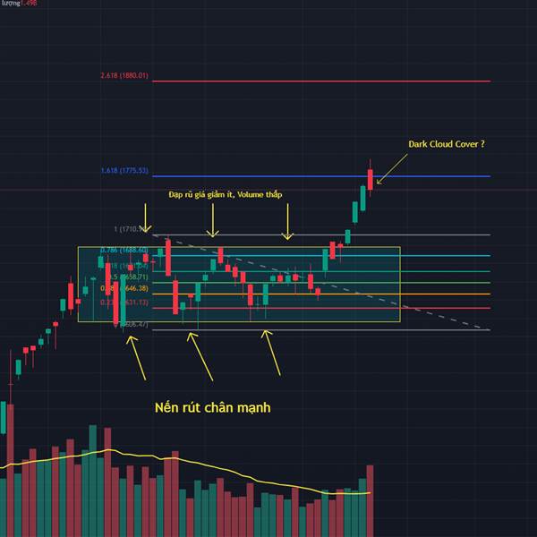 - Kháng cự : Sau khi Break đỉnh ở vị trí giá 1711 điểm Vnindex tăng mạnh test kháng cự Fibonacci ở 1.618 điểm tương ứng quanh mức giá 1777 điểm...Thêm