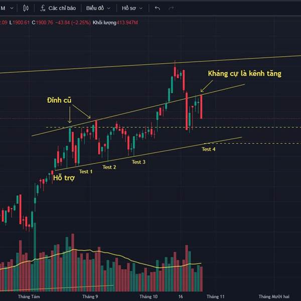 Nhận định xu hướng vận động Vnindex khung Mn : Back test kênh tăng