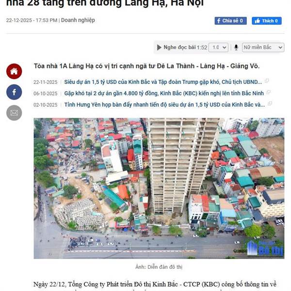 Kinh Bắc (KBC) thâu tóm 99% vốn của chủ đầu tư tòa nhà 28 tầng trên đường Láng Hạ, Hà Nội