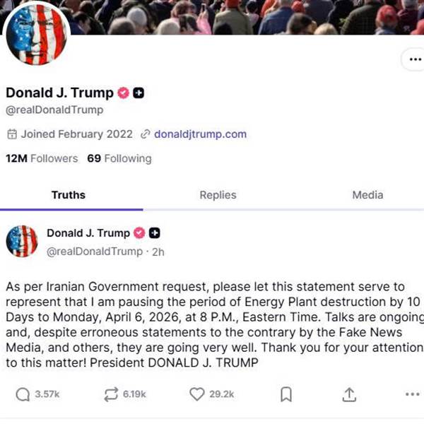 👉👉👉TIN NÓNG: Tổng thống Trump cho biết theo yêu cầu của Chính phủ Iran, ông sẽ TẠM DỪNG việc phá hủy các nhà máy năng lượng trong 10 ngày, đến ngày 6 tháng 4. Đã có những tiến bộ VÔ CÙNG lớn "Các cuộ...Thêm