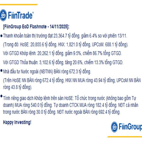 VNINDEX quay đầu giảm với thanh khoản tiếp tục suy yếu, Khối ngoại tăng bán ròng