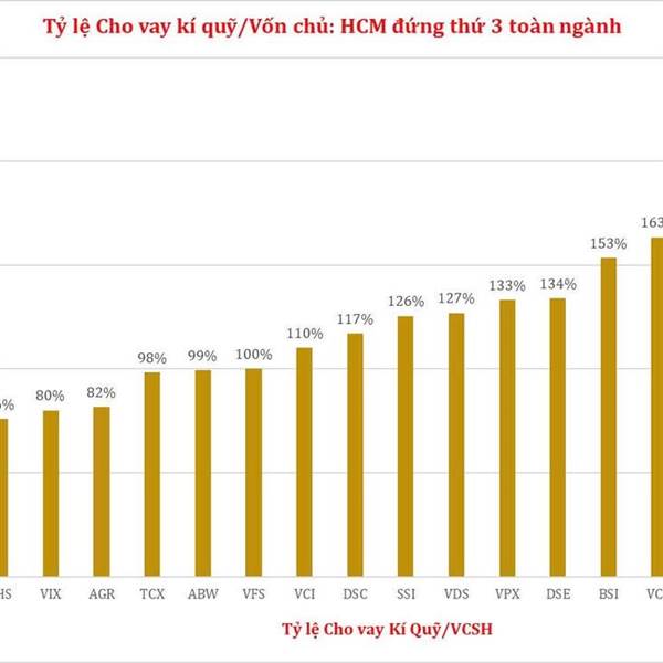 Tỷ lệ Cho vay kí quỹ/Vốn chủ: HCM đứng thứ 3 toàn ngành đạt 190%.