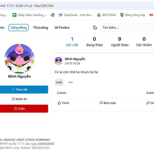 Rảnh rảnh đi kiếm anh MINH NGUYỄN. Giờ xóa bài hết rồi. Đang bị đè giá âm tk quá âm, mỗi lần anh MINH NGUYỄN lên khịa là SHB nó lại kéo lên bớt lỗ. Tự nhiên nhớ anh