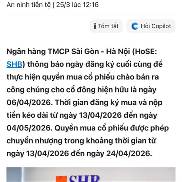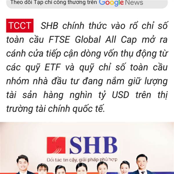 SHB chính thức vào rổ chỉ số toàn cầu