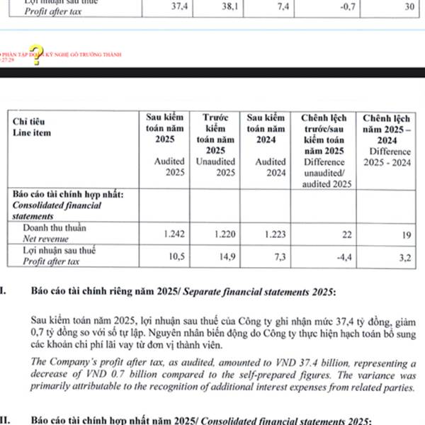Đã có BCTC kiểm toán . Không lệch nhiều . Vậy ông KTT này ok rồi . Mai cho cây trần cho ae cổ đông hân hoan ))