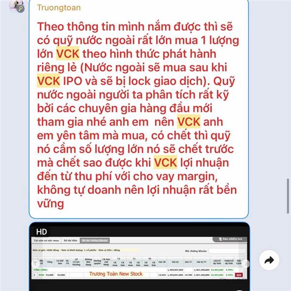 VND tổng KLLH 1.5 tỷ cổ phiếu, VCK cũng 1.5 tỷ cổ phiếu nhưng giá VCK gấp 3 lần VND, anh em đua nhau múc VCK giá 60 còn VND giá 17.x thì chê =)), VCK được mỗi cái thị phần mô giới top1 do MG đông, kéo...Thêm