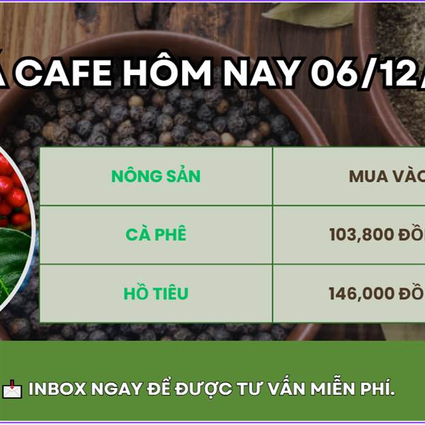 🌼🔴GIÁ CAFE HÔM NAY 06/12/2025 TIẾP TỤC CHỮNG LẠI QUANH MỐC 103,000 ĐỒNG/KG.