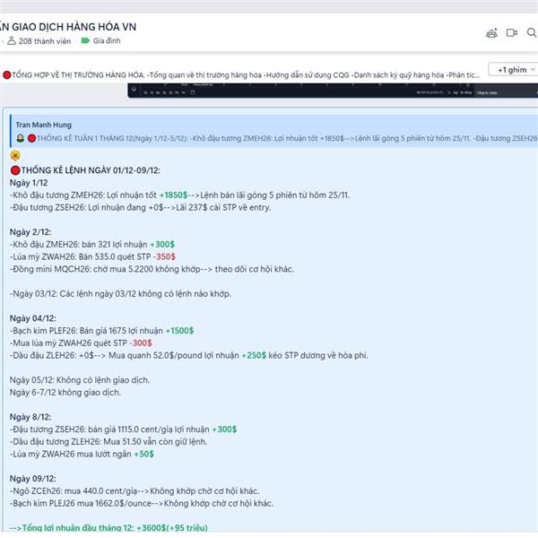 🔴 **THỐNG KÊ KẾT QUẢ GIAO DỊCH TỪ 01/12 – 09/12**