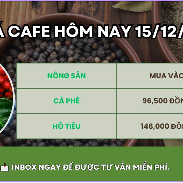 🔥GIÁ CAFE HÔM NAY 15/12/2025 TIẾP TỤC HẠ QUANH 96,000 ĐỒNG/KG.
