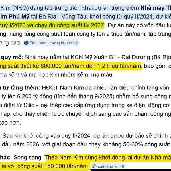 Các thông tin tích của ngành Thép: