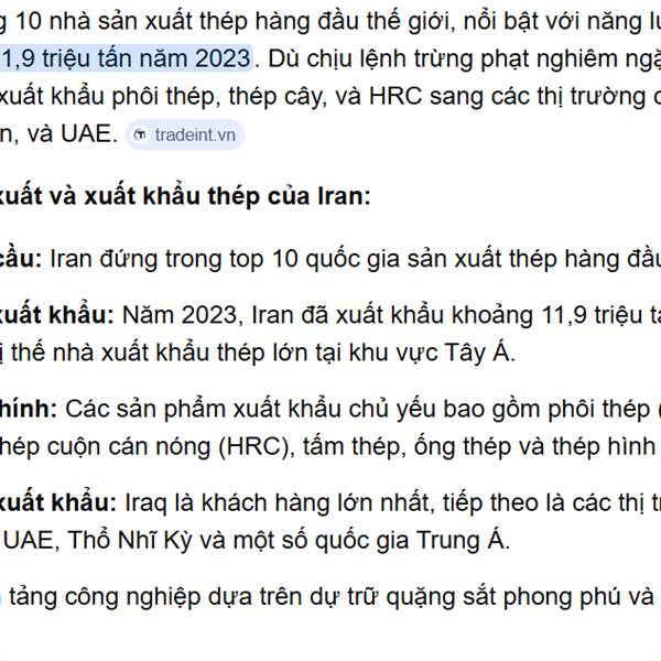 2. Iran nằm trong 10 nhà sản xuất Thép hàng đầu thế giờ mà bị Mẽo hóa vàng rồi.