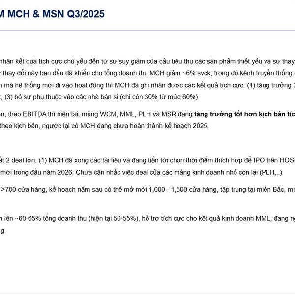 MSN: Tiêu dùng tăng mạnh cuối năm + WCM cải thiện → doanh thu – lợi nhuận bật lại.