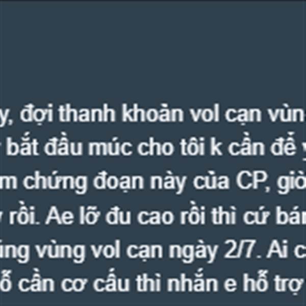 Mua phải mua lúc ai cũng sợ vứt hàng đi chứ không phải lên đây đua lệnh nhé ae. Bơm oxi cho ae nhiều làn con hàng này rồi. Ai thích cầm dài hạn thì vị thế tốt rồi ôm ngồi yên không nhả. Ai chưa có thì...Thêm
