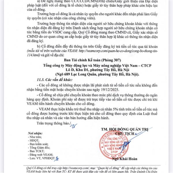 Mai là tiền cổ tức về tk à ae cổ đông dài hạn