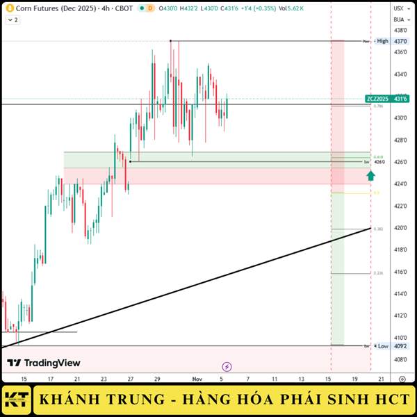 NGÔ ZCEZ25 ngày 05/11/2025: CẬP NHẬT BIẾN ĐỘNG VÀ CHIẾN LƯỢC GIAO DỊCH ------ Ngô có 1 tuần tăng giá duy trì mức 1.65%. Duy trì giá ở vùng cao, xu hướng tăng tích cực.